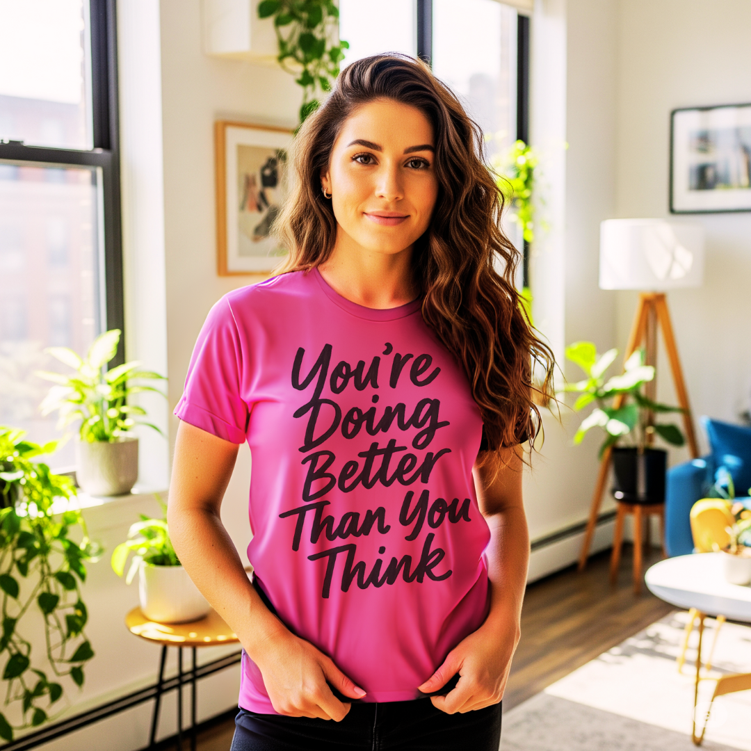 We’re a woman-owned brand that mixes fitness with fun, so every tee helps you shine inside and out. Our designs celebrate strength, self-love, and a little sass—because wellness should feel empowering, not boring. From bold graphics to playful slogans, each piece is made to reflect your energy and uplift your spirit.